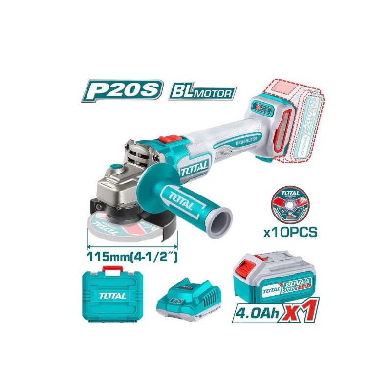 Pulidora Inalámbrica TOTAL 20V 3000/6000/9000 rpm 4 1/2″ c/ Cargador y Bateria - 10 DISCOS - UTAGLI211541