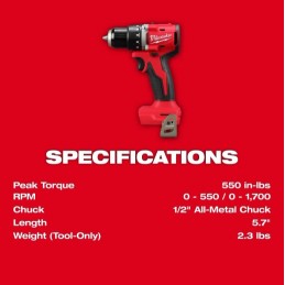 El motor sin escobillas ha sido diseñado para garantizar un rendimiento óptimo de la herramienta con un par de 550 in-lbs y 0-1.700 RPM, capaz de hacer frente a una amplia gama de aplicaciones de perforación y fijación.
