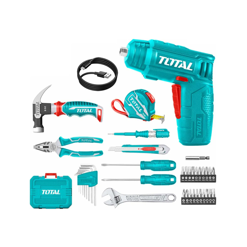 ATORNILLADOR INALAMBRICO 4V Y SET HERRAMIENTAS 37 PIEZAS THKTHP10386
