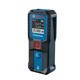 El medidor láser GLM 25-23 Professional es la solución práctica y fácil de usar para mediciones interiores rápidas y precisas. Esta herramienta de bolsillo permite una medición intuitiva gracias a una interfaz de usuario moderna y solo dos botones. Las medidas son exactas y consistentes gracias al sistema de alta precisión y la certificación ISO 16331-1 que satisfacen las necesidades profesionales. Con múltiples funciones y unidades de medición, que incluyen longitud, área y medición continua, este medidor láser ofrece un alto grado de versatilidad.