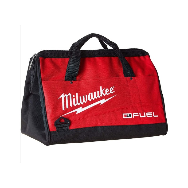 Bolsa Milwaukee de 16 pulgadas, 2 asas reforzadas y resistentes, parte inferior acolchada para mayor durabilidad y protección, cuenta con el logotipo de Milwaukee y seis prácticos bolsillos interiores, hecha de un material resistente y resistente al agua de 600 deniers, cierre de cremallera duradero, ideal para guardar herramientas y accesorios, bolsa de lona de alta resistencia