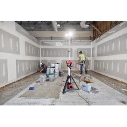 La torre de iluminación de potencia doble M18™ ROCKET™ está proporcionando más luz en el lugar de trabajo con 2,500 lúmenes de salida de alta definición TRUEVIEW™, provee un 25 % más de luz y funcionamiento todo el día. Todo esto mientras tiene la capacidad de tener potencia doble, alimentada por una batería M18™ o un cable de extensión.