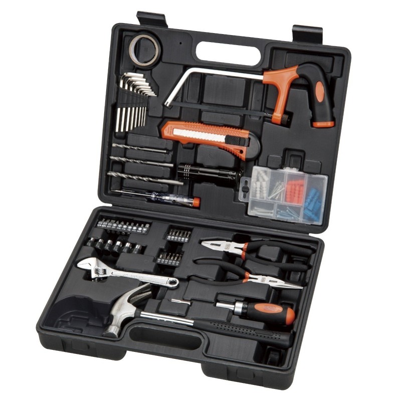 Ideal para trabajos básicos en el hogar 107 piezas indispensables para aplicaciones Diversas, Acero cromo vanadium, mangos en goma, vinilo o resina estructural, No son para trabajos con corriente alterna, excepto por el probador o tester.