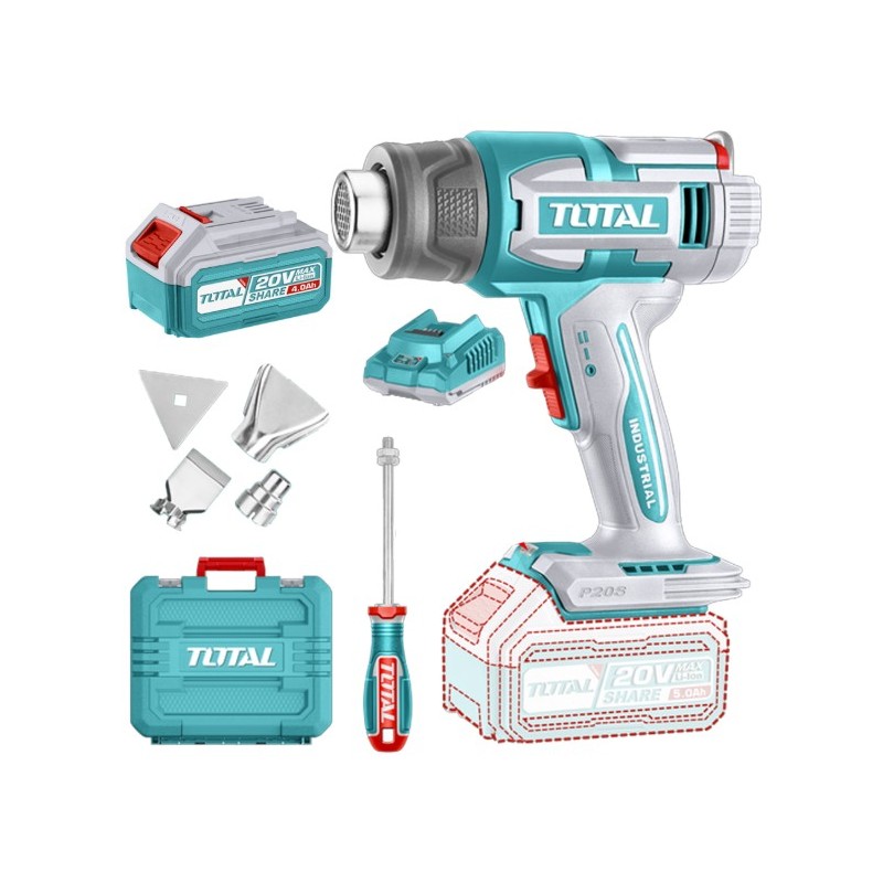 PISTOLA CALOR INALAMBRICA 20V INCLUYE 4 BOQUILLAS 1 BATERIA 5.0AH Y 1 CARGADOR INDUSTRIAL SUPER TOTAL (UTBLI20035)
