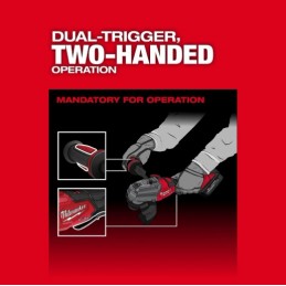 La activación de gatillo doble de la rectificadora con freno de gatillo doble M18 FUEL™ de 4-1/2” / 5” requiere ambas manos para su operación.