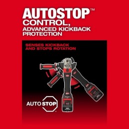 Por primera vez en una rectificadora de Milwaukee®, el control antirrebote AUTOSTOP™ permite evitar rebotes graves, mientras que el freno RAPIDSTOP™ detiene la mayoría de los accesorios en menos de 1 segundo.