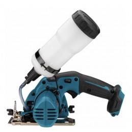 Una cortadora de diamante compacta y ligera con una velocidad de 1600 min⁻¹ para el corte sin polvo de azulejos, vidrio y otros materiales duros. Equipada con un depósito de agua de 0,5 l y un disco de diamante de 85 mm, con una profundidad de corte de 25,5 mm.